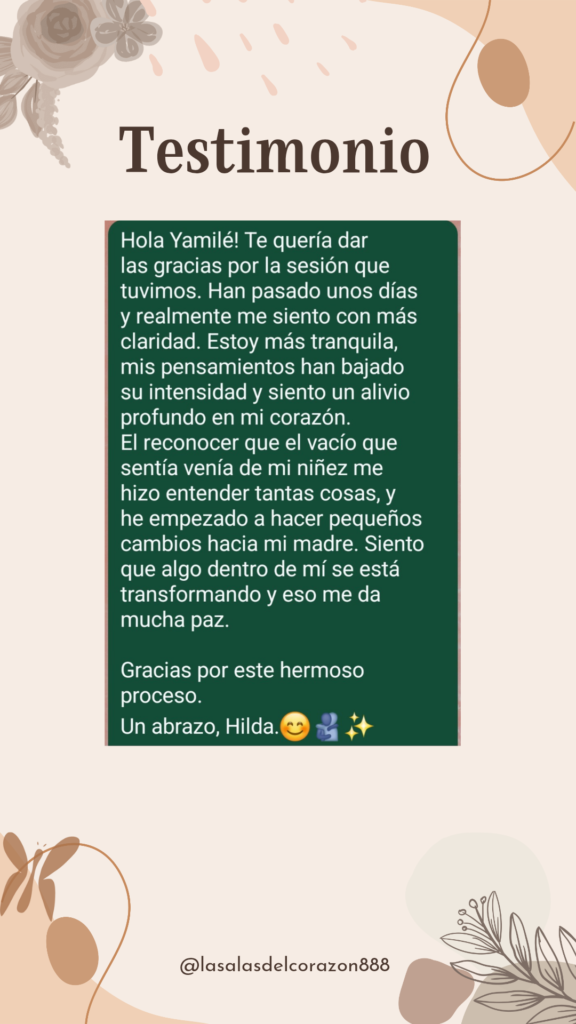Desde entonces me he formado en diferentes herramientas de sanación y desarrollo interior, Registros Akáshicos, TetaHealing, Reiki Angélico, Constelaciones Familiares y trabajo de linaje, que hoy integro de forma amorosa en cada acompañamiento.