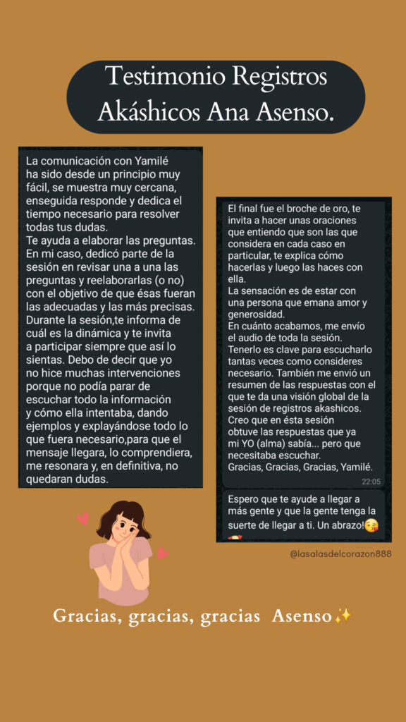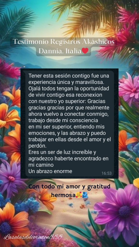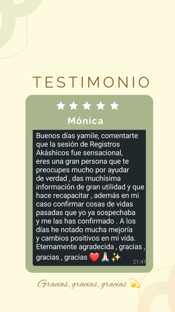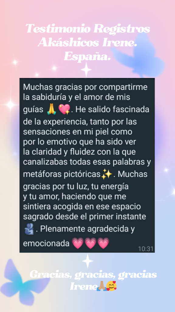 Mi camino empezó en uno de los momentos más difíciles de mi vida: estaba perdida, llena de dudas, miedo y un ruido mental que no me dejaba ver con claridad. Buscando respuestas encontré los Registros Akáshicos… y lo que descubrí transformó mi vida por completo: recuperé mi voz, mi intuición, mi poder personal y la confianza que creía perdida.